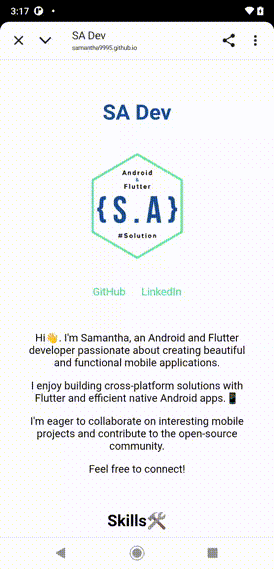 View ProjectsHi, I'm Samantha. I specialize in Android and enjoy exploring technologies like Flutter and AI. I'm passionate about building practical apps that empower users to solve problems and take control of their lives.